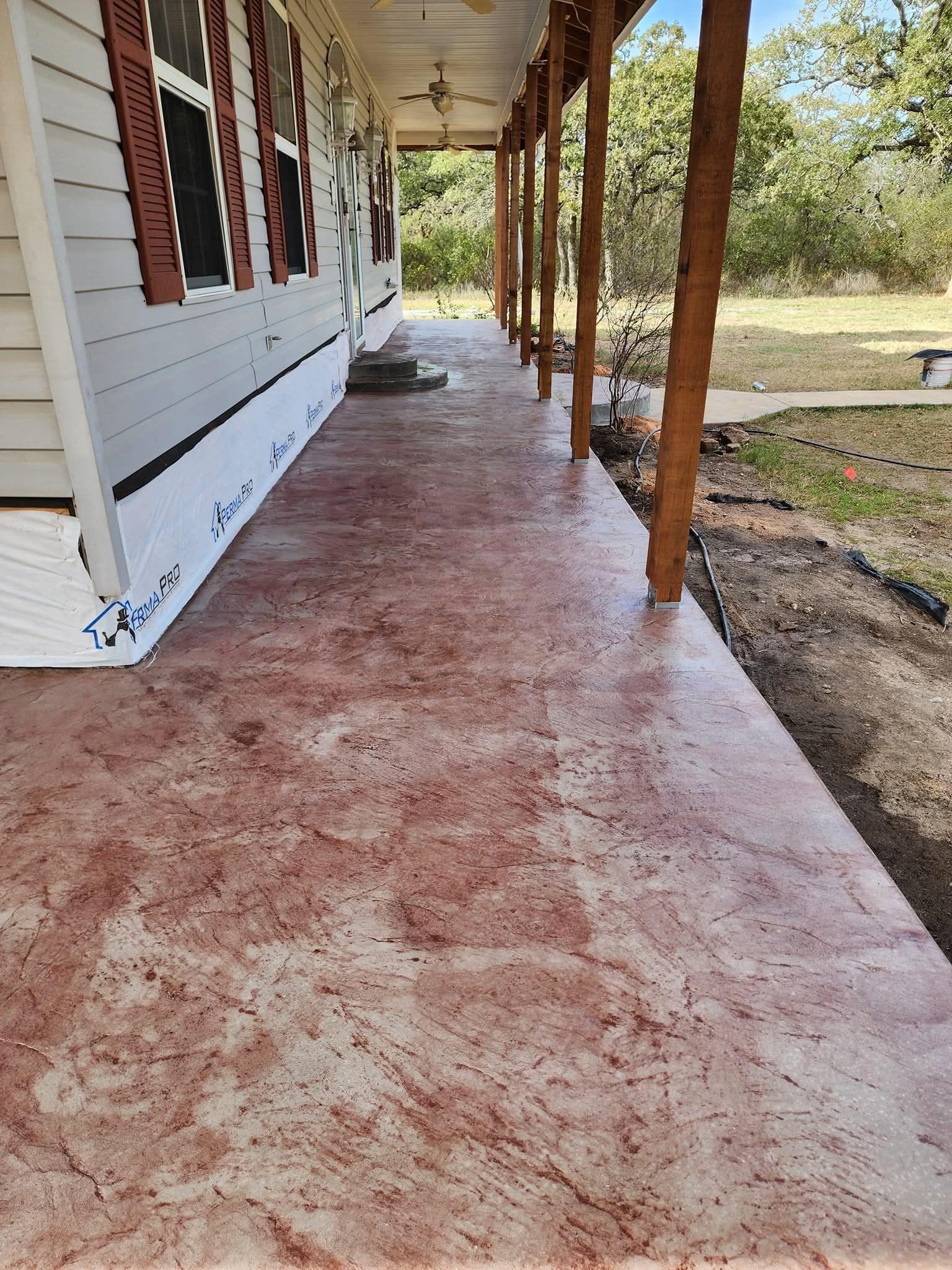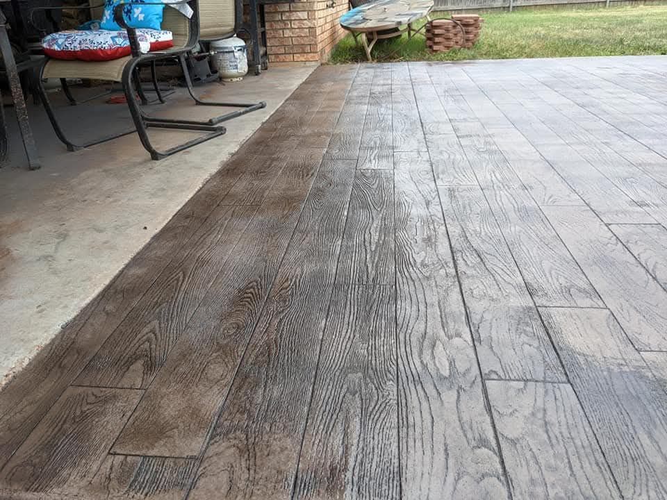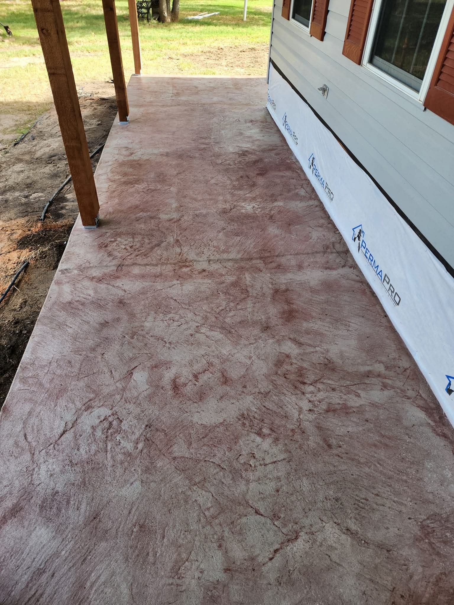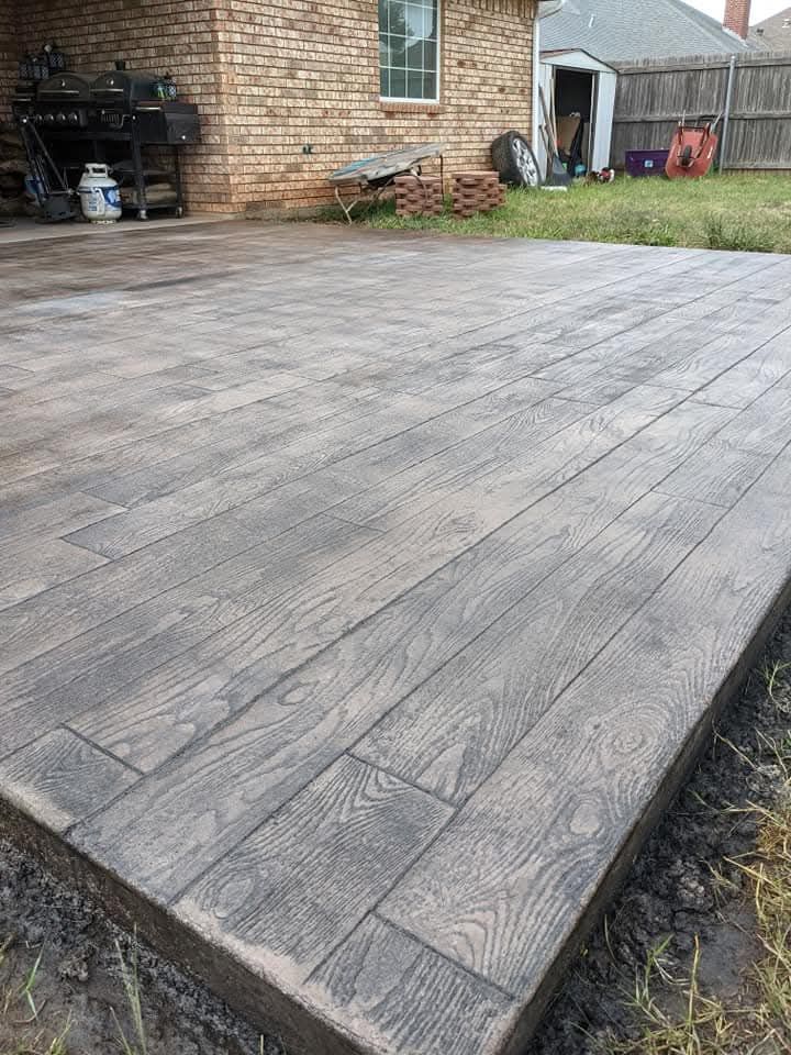 - Stamped Concrete: Stamped concrete is concrete that is designed to look like different materials (such as wood, brick, or stone), and can be used to create a new driveway, patio, sidewalk, walkway, or other structure.