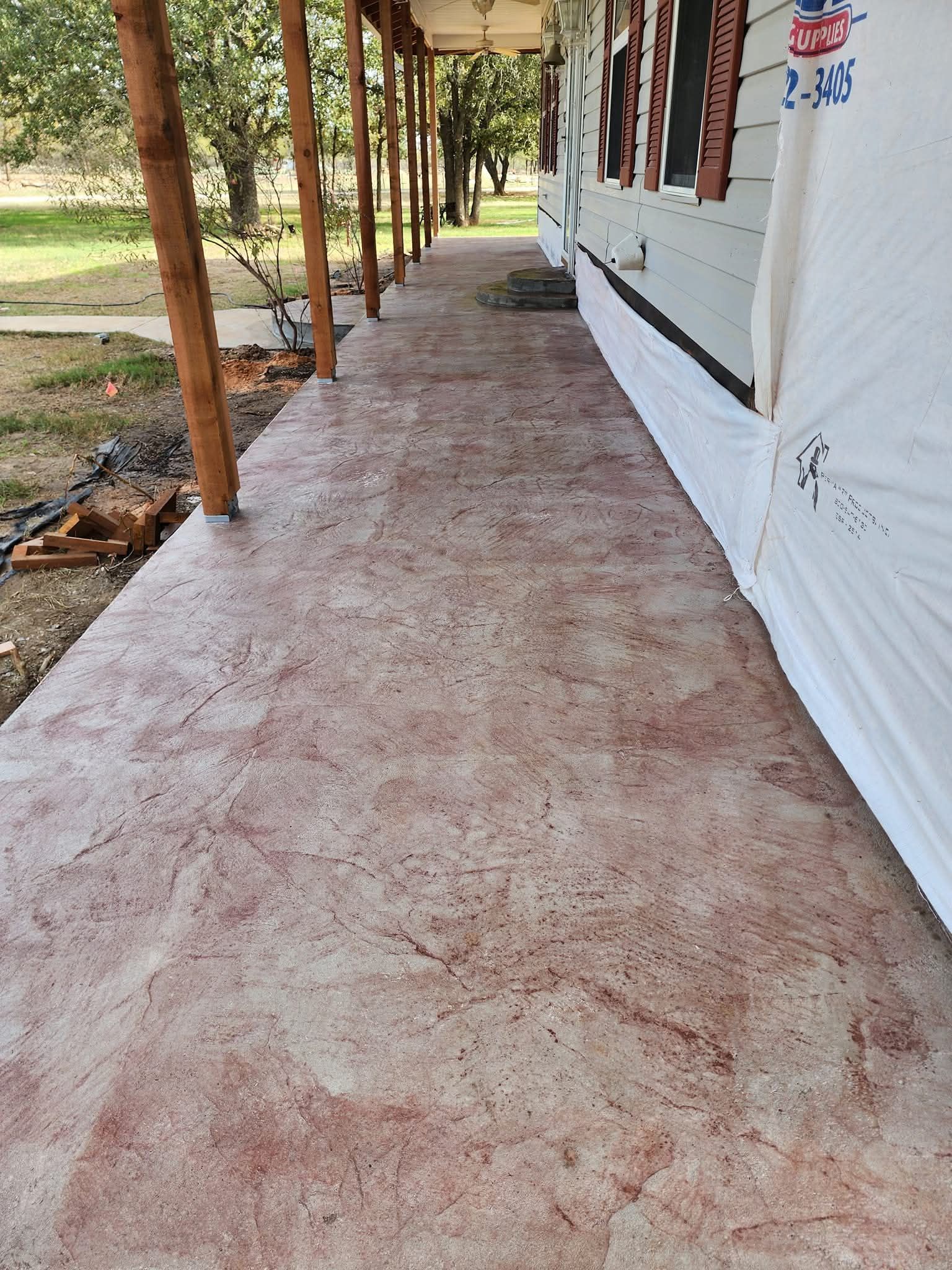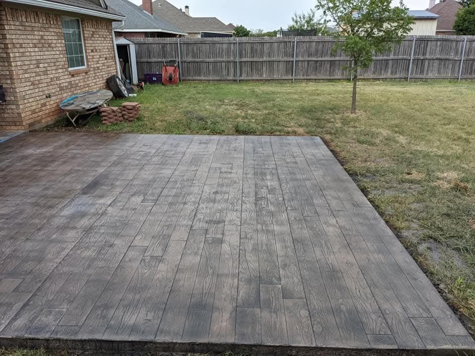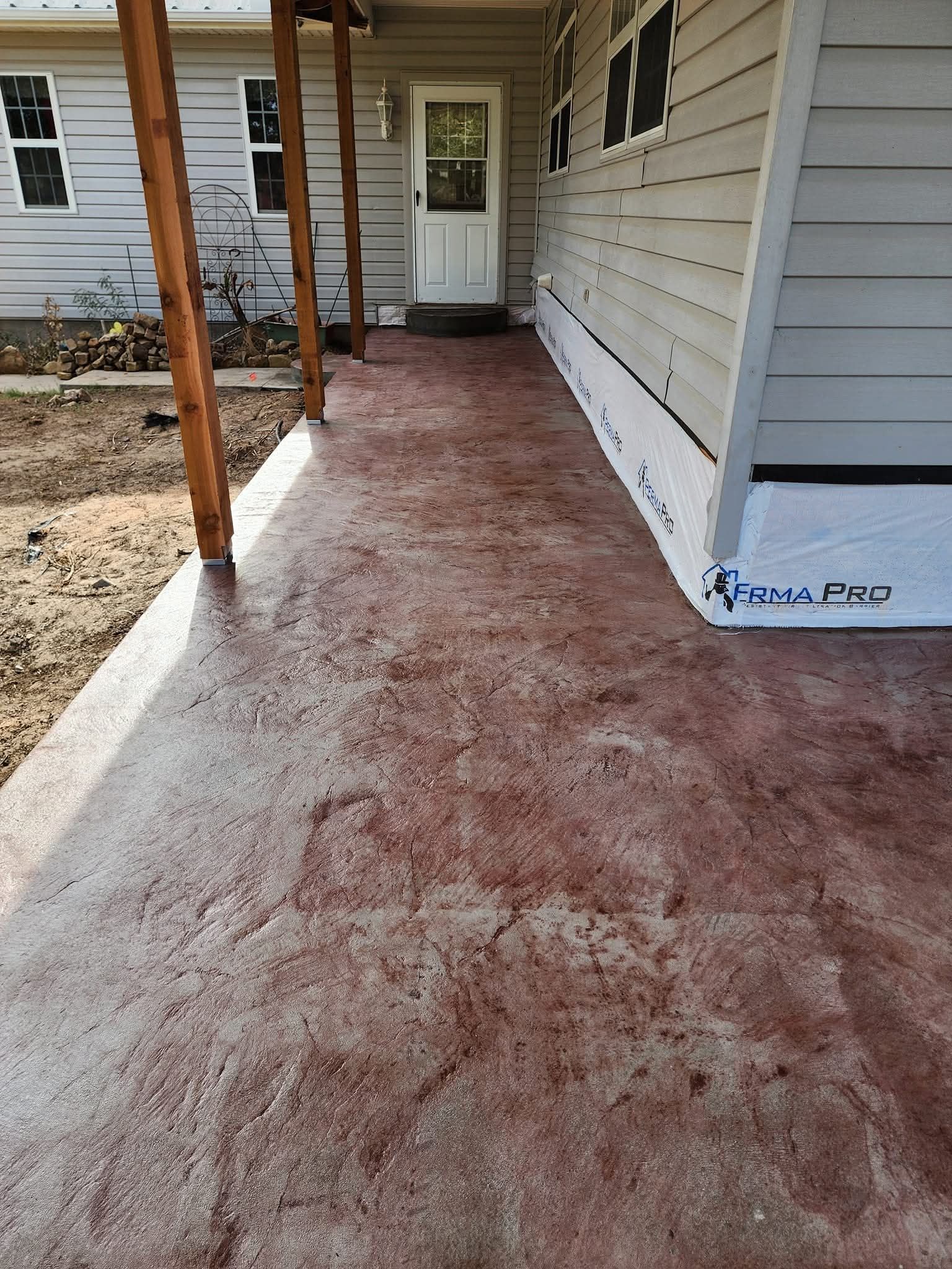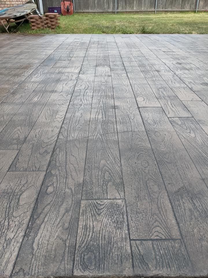 - Stamped Concrete: Stamped concrete is concrete that is designed to look like different materials (such as wood, brick, or stone), and can be used to create a new driveway, patio, sidewalk, walkway, or other structure.