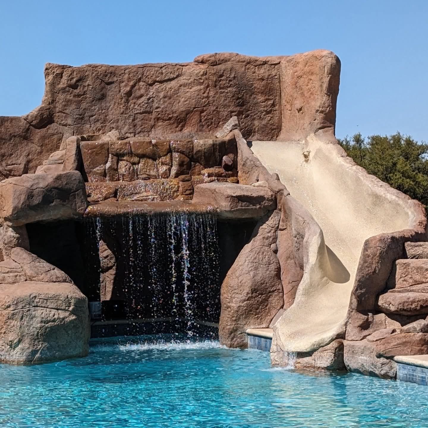 Our faux rock installations bring artistry and realism together. Each structure is hand-sculpted and colored to resemble natural stone formations — without the weight, cost, or weathering that comes with real rock. Whether you want a hidden grotto with a waterfall, a slide integrated into the poolside rockwork, or decorative rock walls framing your backyard oasis, we make it happen.